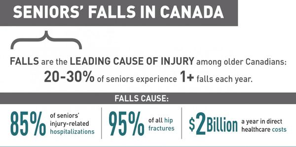 Falls are the leading cause of injury among Canadians aged 65 and older — with nearly 1 in 3 older adults experiencing a fall each year. (85% of senior injury-related hospital admissions)